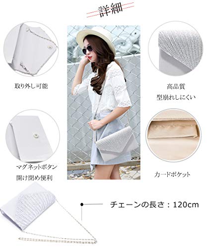 [BOHALUU] ボハル ハンドバッグ 2WAY ショルダーバッグ 小さめ レディース アイボリー色 プリーツタイプ パーティーバッグ クラッチバッグ 結婚式バッグ エレガント キラキラ かわいい