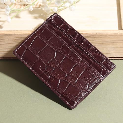 Genuine Leather Slim Card Holder Wallet for Men – Premium and Stylish Card Holder with Capacity for 7-10 Cards and Currency Compartment – Stylish and Functional Leather Wallet (CHERRY)