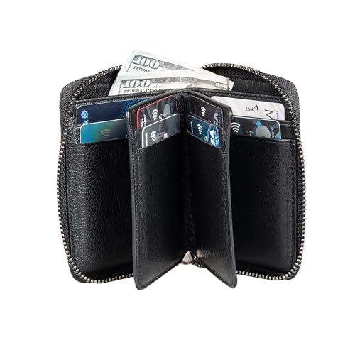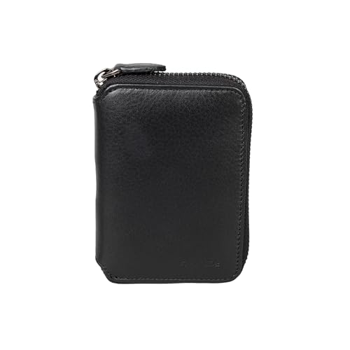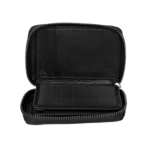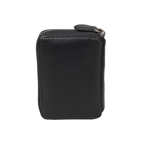 grande 1786 Genuine Leather Small Zip Around Wallet For Men and Women Minimalist Card Case Small Zippered Purse (Black)