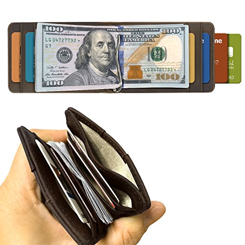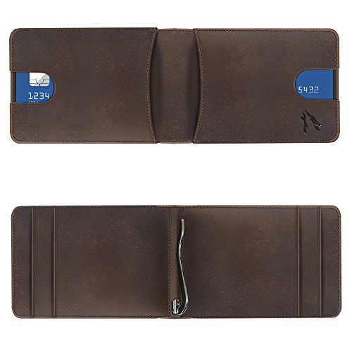 - STYLISH DESIGN - 2 external pocket for quick access to your cards, 1 hidden pocket, 4 internal card holder, and a stainless steel money clip in the center to securely hold your bills.