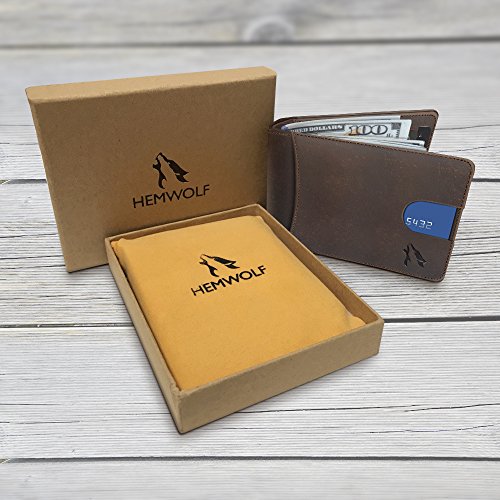 Men's Real Genuine Leather RFID Blocking Ultra Slim Bifold Money Clip Wallet with Dual External Pocket, Full Grain Leather Texas Brown