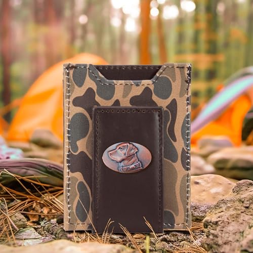 ZEP-PRO Lab Men's Magnetic Front Pocket Old School Camo Leather Wallet – Slim Design with Card Slots and Money Clip, Brown/Tan Camo