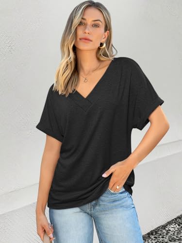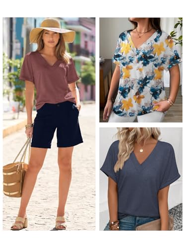 ATHMILE V Neck T Shirts for Women Summer Tops Soft Casual Short Sleeve Cute Basic Trendy Outfits 2025