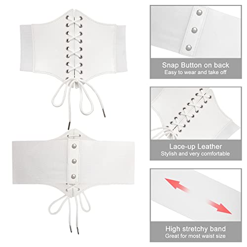 Urieo Stretchy Leather Corset Belt Elastic Black Waist Belts Wide Costume Waspie Belt for Women