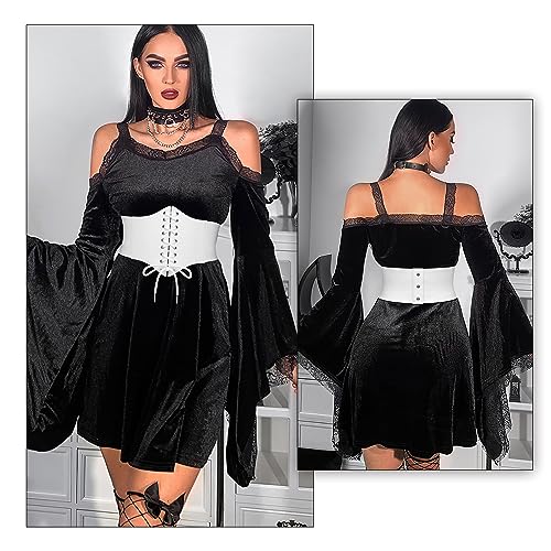 - Black Corset Waist Belt for Women Tied Waspie Belt Lace-up Cinch Belt Elastic Wide Belt for Halloween Theme Party