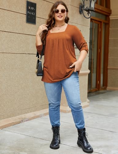 Kancystore Women's Plus Size 3/4 Sleeve Tops Square Neck Shirts Loose Pleated Tunic Blouses