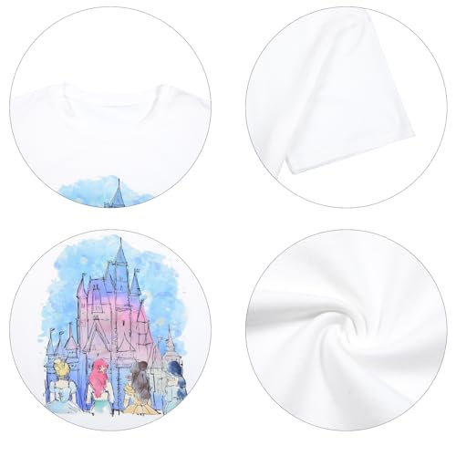 - MAIN FEATURES: Princess castle graphic, classic crew neck, cute graphic design, short sleeve, casual style, relaxed fit. Easy to match with your favorite jeans, tights, shorts, overall, canvas shoes, high heel or boots to get a casual yet fashion look.