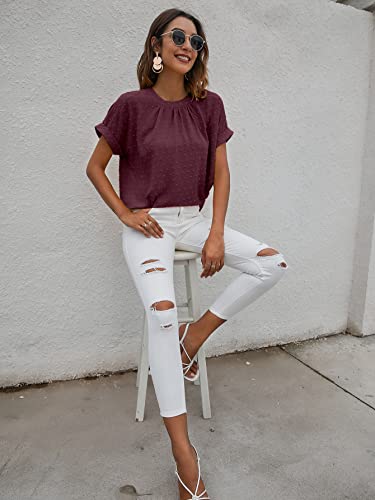 Milumia Polka Dots Blouses for Women Casual Crewneck Short Sleeve Work Office Shirt Top