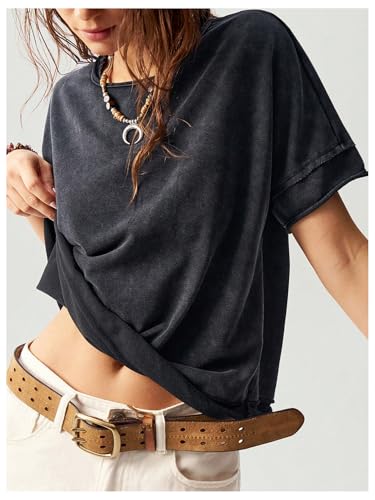 - Feature: Butterfly Embroidery, Contrast Mesh, Cut Out Back, Round Neck, Washed Vintage, Short Sleeve, Loose Fit, Solid Trendy Going Out Tee Shirts for Women
