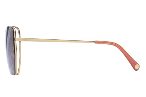 - Lightweight matte gold frame with papaya orange acetate tips and brown lenses