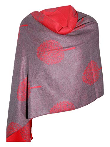 RED GREY LUXURY CASHMERE SCARF MULBERRY TREE PRINT REVERSABLE SUPER SOFT SUMMER WINTER SPRING SCARF UNISEX TRENDY PREMIUM QUALITY SCARFGIFT FOR HER HIM HER EVERYONE