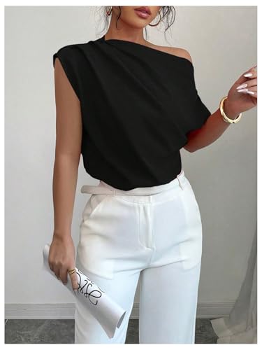 - Feature: Ruched, asymmetrical neck, off the shoulder, short sleeve, womens tops, solid color, fashionable