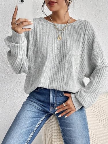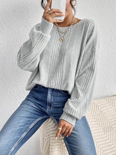 SweatyRocks Women's Criss Cross Round Neck Pullover Sweaters Long Sleeve Loose Cut Out Back Knit Tee Tops Backless Shirts