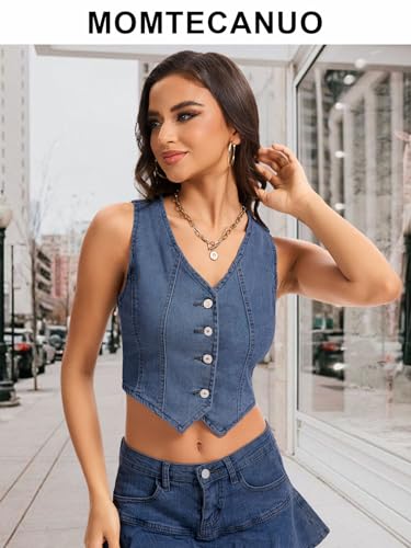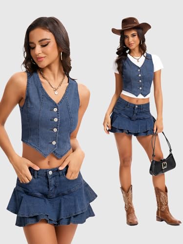 - Fashion Design: Our women's cropped denim vest, jean vest top for women features a classic V neck and button down closure, perfectly showcasing the collarbone; this denim vest women is perfect for adding a touch of retro style to your look