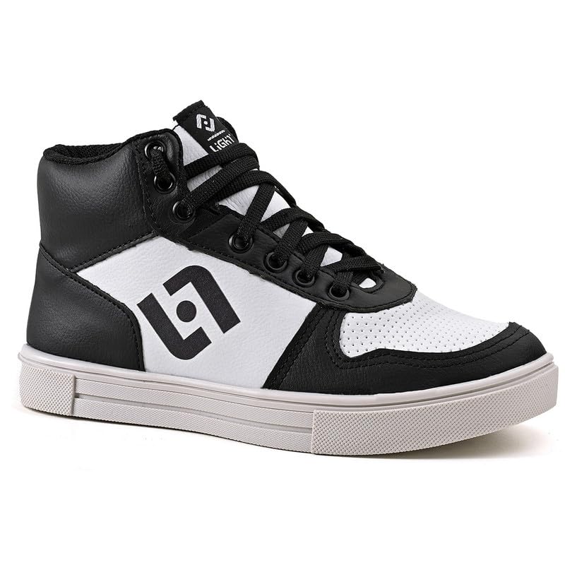 Light - Kids Shoes Kit with Watch & Sunglasses - High-Top Shoes for Boys, Quality Material Kid Sneakers - Size Big Kid 1 - Black & White