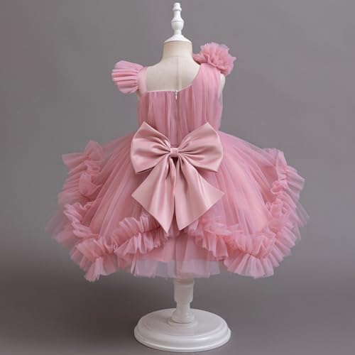 - Pageant Dress for Girls: Toddler baby girl birthday party dress features an asymmetric neckline with flutter sleeve, a seam with sparkle sequins at the waistline, invisible zipper with an exaggerated bowknot with snaps at back, super convenient to wear, multi-layered ruffle tulle, creating a truly eye-catching and elegant look. adorned with sequins that shimmer beautifully in the light, this dress is crafted with impeccable attention to detail, making it perfect for special occasions.