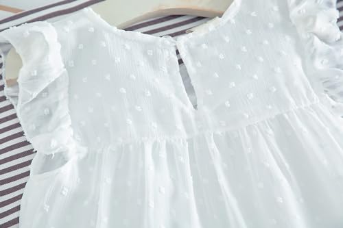 - ★Design: ruffle sleeveless, round neck, pull on, button back design, chiffon ruffle dress, swiss dots print tulle tutu dress, knee length. Using soft chiffon material, due to folding and transportation issues, it may appear wrinkled.