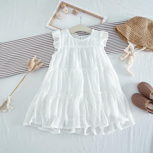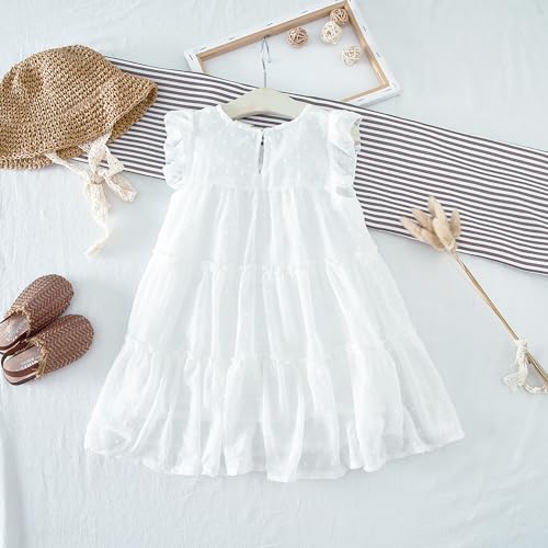 Toddler Girls Ruffle Dress Sleeveless Flower Girls Swiss Dot Flowy Pleated Party Dress Size 1-6T