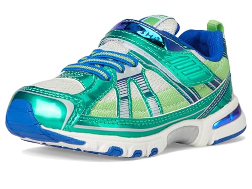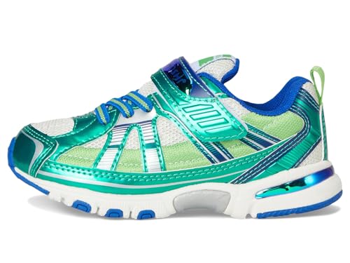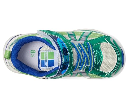 TSUKIHOSHI Storm Kids Shoes - Strap-Closure Machine-Washable Kids and Toddler Shoes with Wide Toe Box & Slip-Resistant, Non-Marking Outsoles, Green/Blue - 8.5 Toddler (1-4 Years)