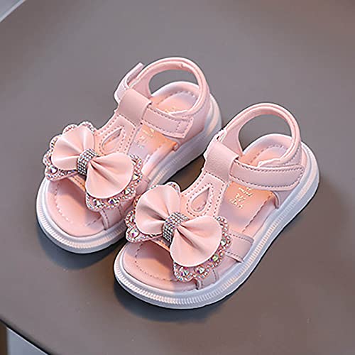Unisex-Child and Toddler Baby Girls Shoes Lightweight Soft Sole Bowknot Outdoor Shoes Summer Princess (Pink, 26 Toddler)